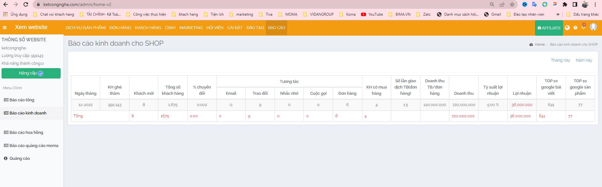 Số khách hàng Tiềm năng Tỷ lệ chuyển đôi Khách hàng có mua hàng DS Trung bình/ đơn hàng Doanh Thu Tỷ suất lợi nhuận Lợi nhuận Top bài viết Google