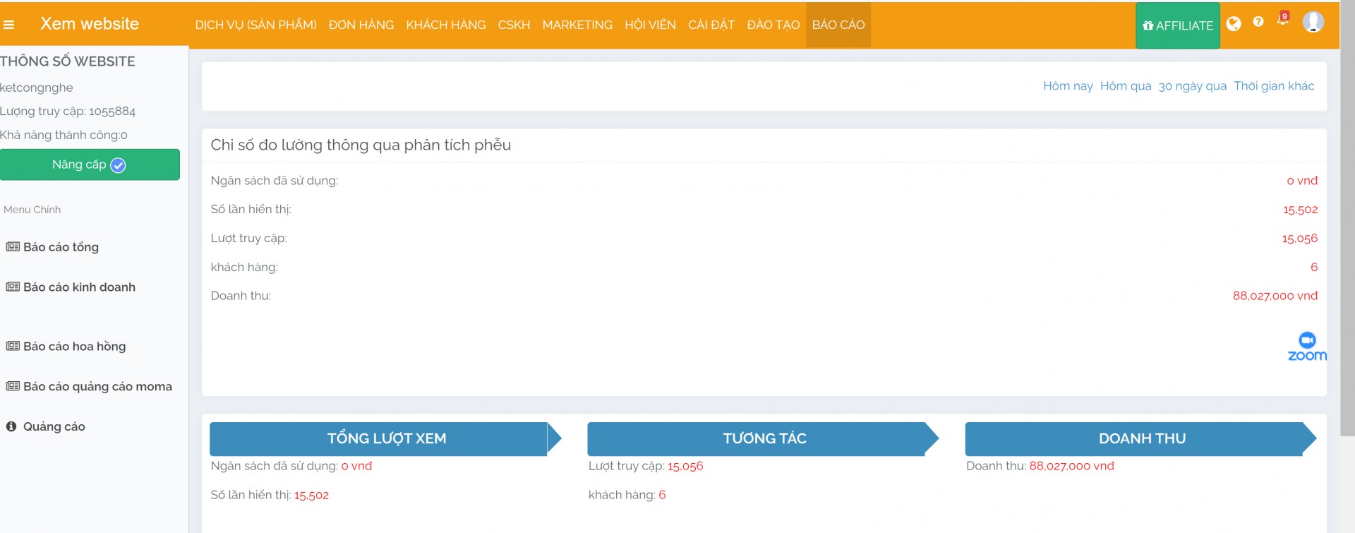 3. BÁO CÁO KINH DOANH THÁNG CỦA MỘT DOANH NGHIỆP SỬ DỤNG MIỄN PHÍ GIẢI PHÁP MOMA MARKETING
