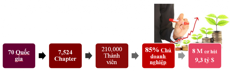 Tới năm 2018 Các thành viên của BNI đã trao cho nhau cơ hội marketing mang tổng giá trị lên tới 9,3 tỷ đô.