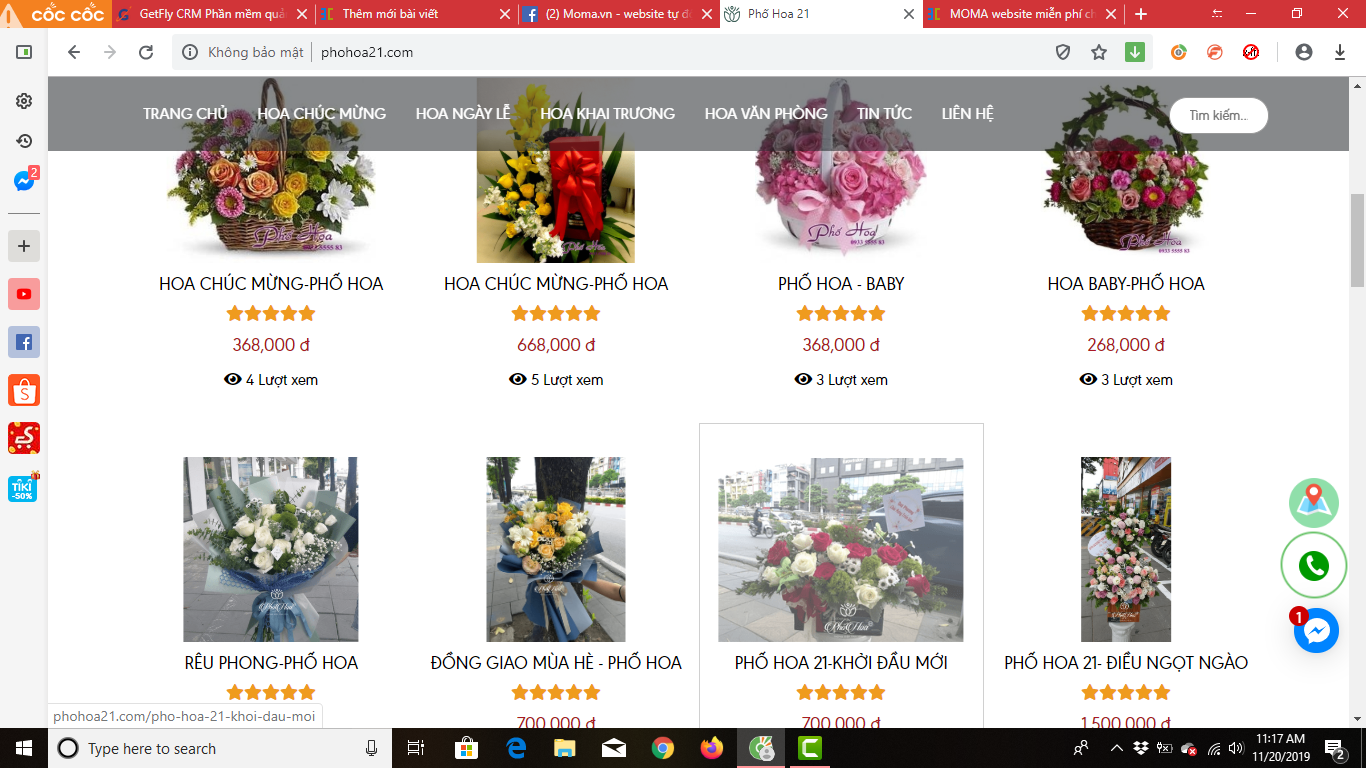 Mẫu website hoa tươi được tạo bằng nền tảng website miễn phí moma: http://phohoa21.com/