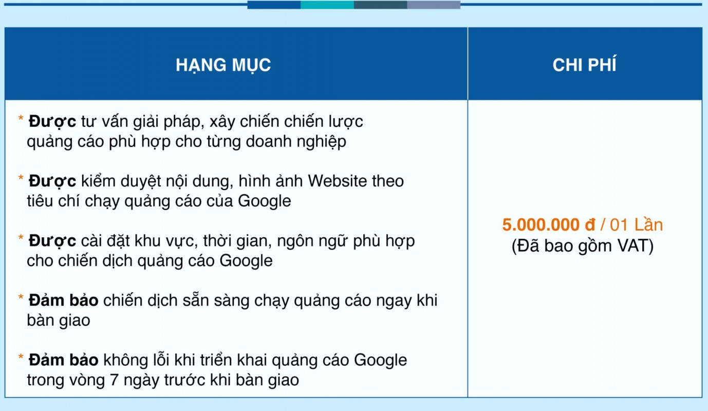 3. Bảng giá dịch vụ Cài đặt quảng cáo Google:
