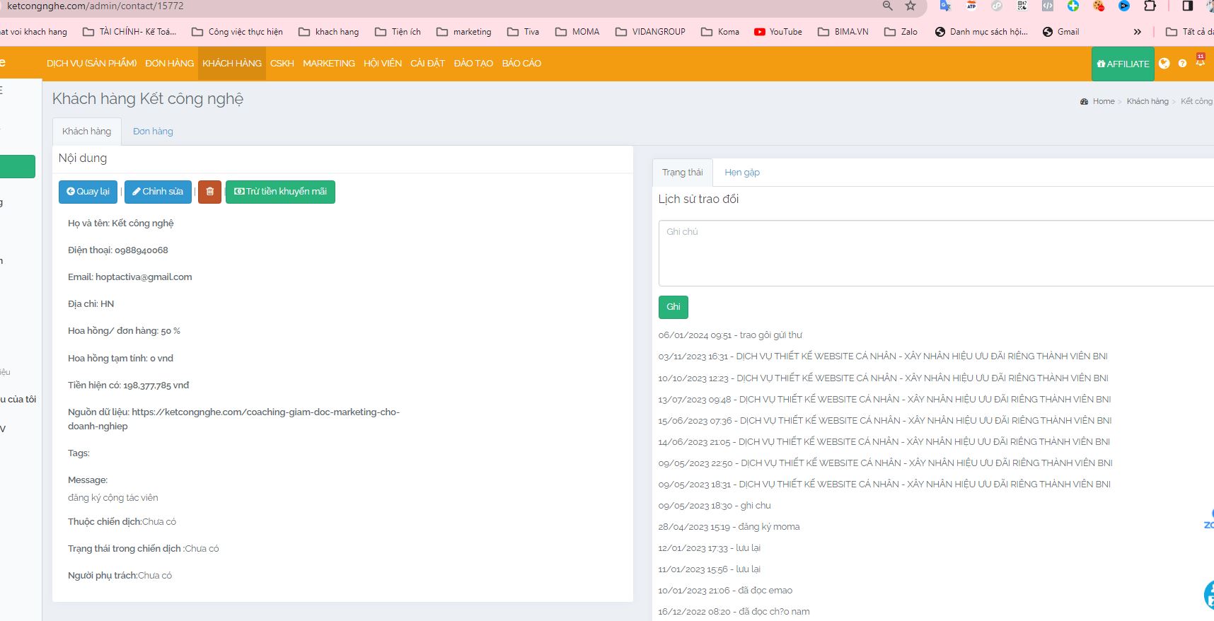 Cách 1: Vào chi tiết một khách hàng gửi nội dung soạn sẵn