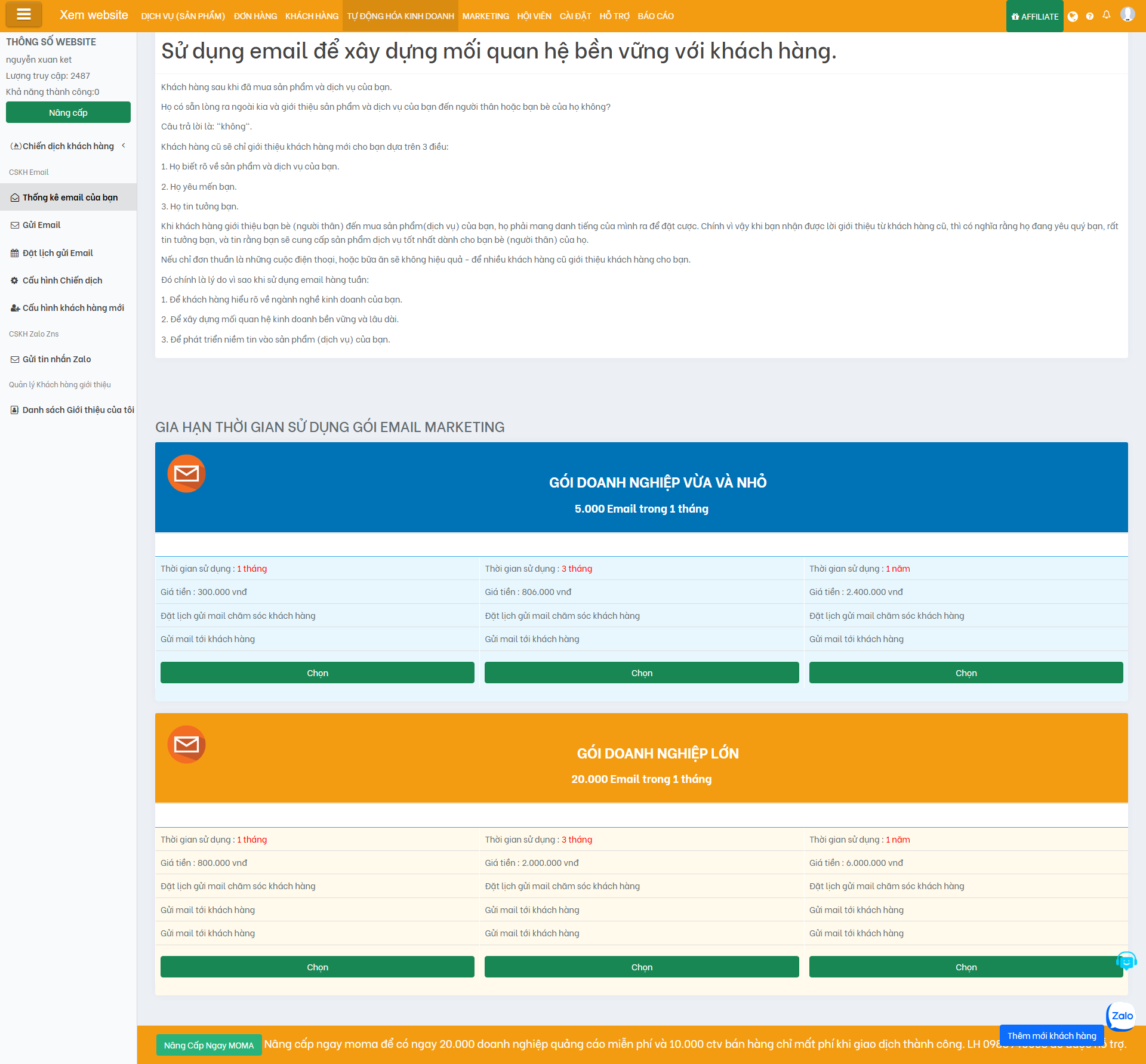 GIA HẠN THỜI GIAN SỬ DỤNG GÓI EMAIL MARKETING