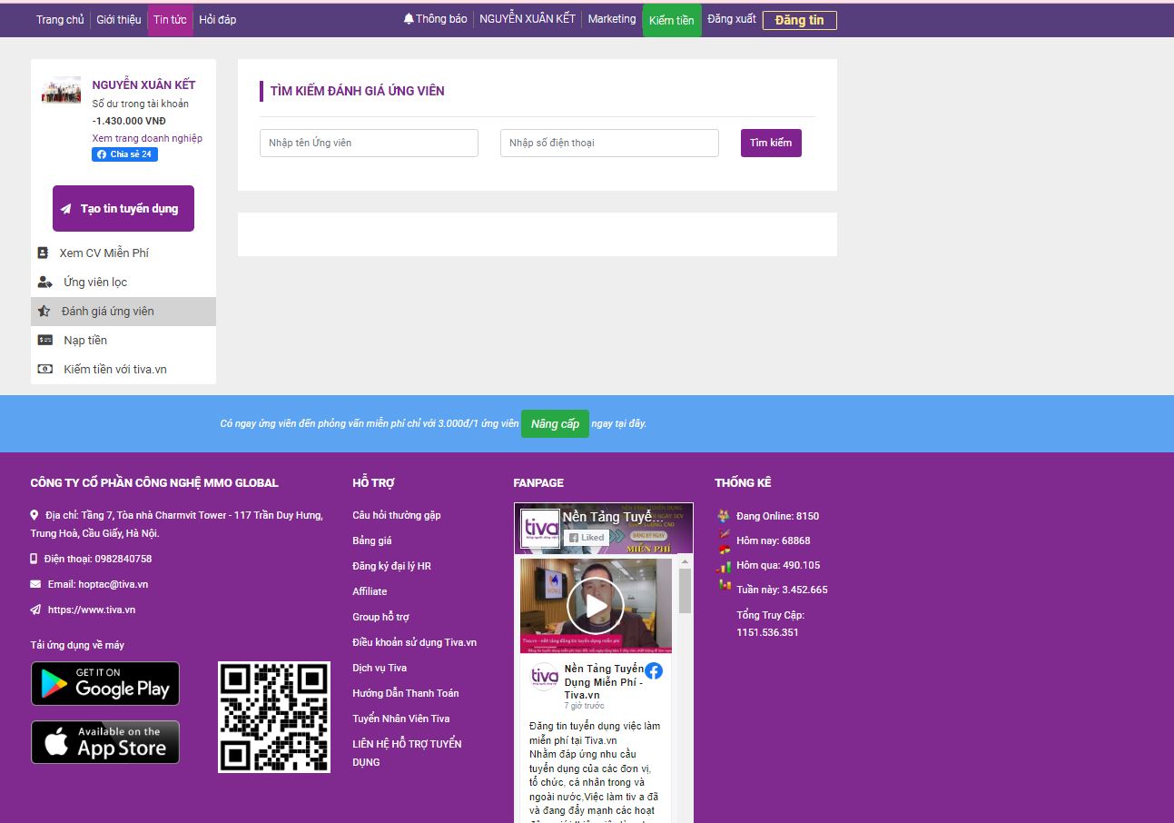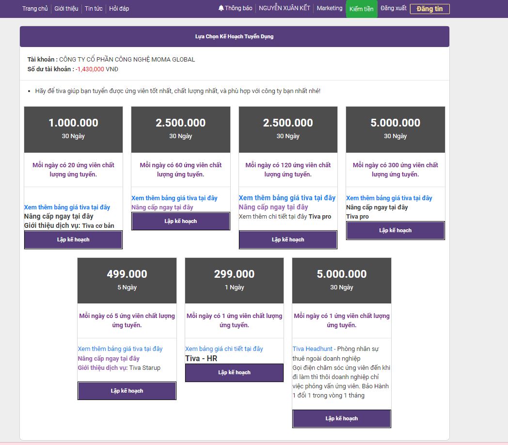 Chào các anh chị chủ doanh nghiệp ngoài nền tảng Moma.vn tạo website marketing miễn phí thì công ty mmo global còn có nền tảng tuyển dụng tiva.vn số 1 hiện nay về cung cấp ứng viên miễn phí. Mỗi ngày nhà tuyển dụng có 5 ứng viên chất lượng cao hoàn toàn miễn phí