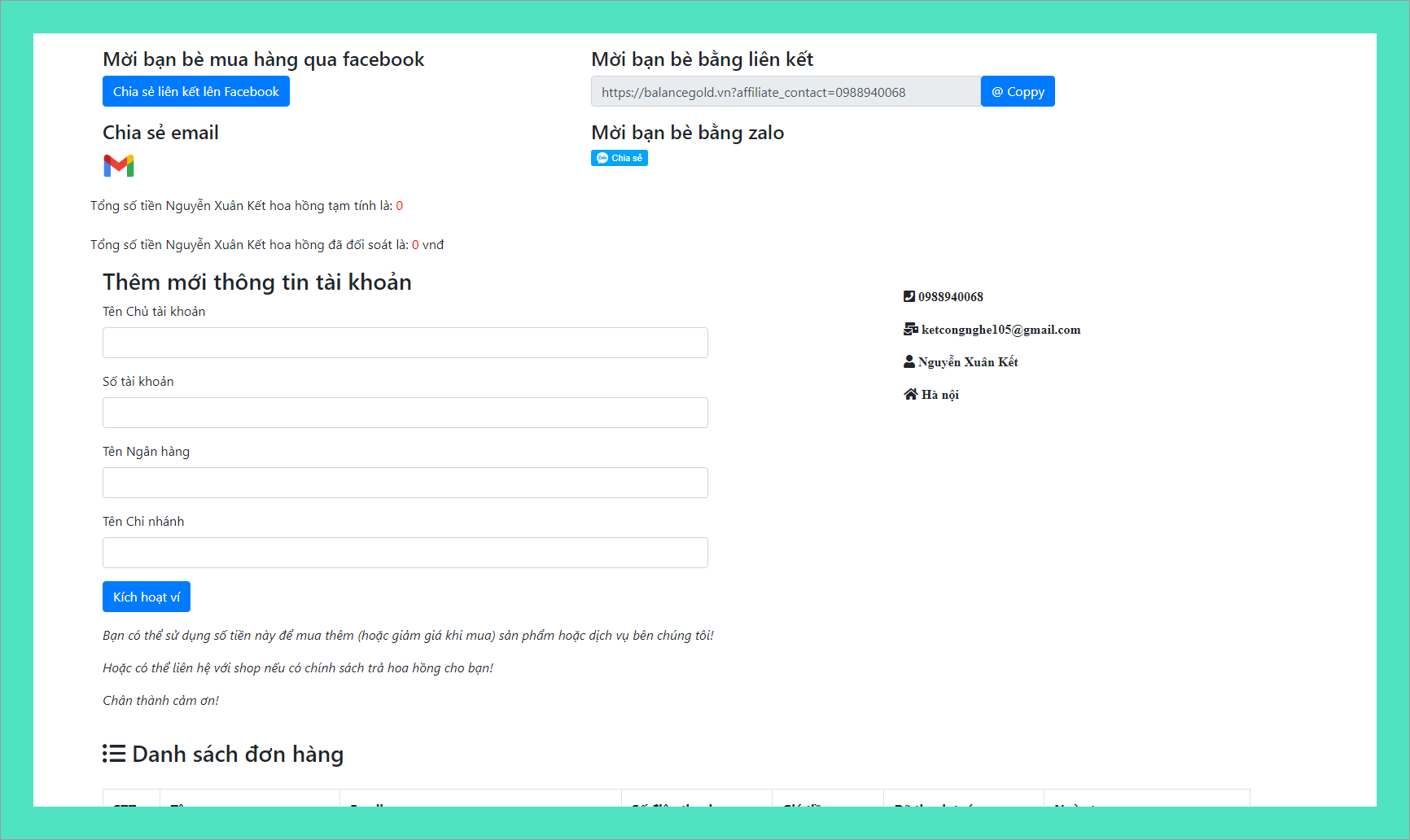 2. Thanh toán qua số dư hiện tại Khi cộng tác viên thanh toán bán hàng thì cộng tác viên có thể dùng số đó để trừ luôn