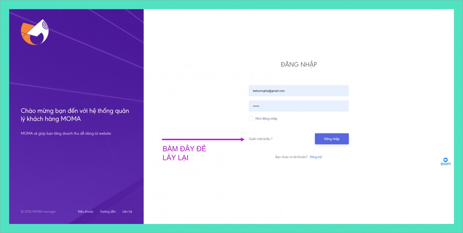 Hướng dẫn lấy lại mật khẩu từ moma
