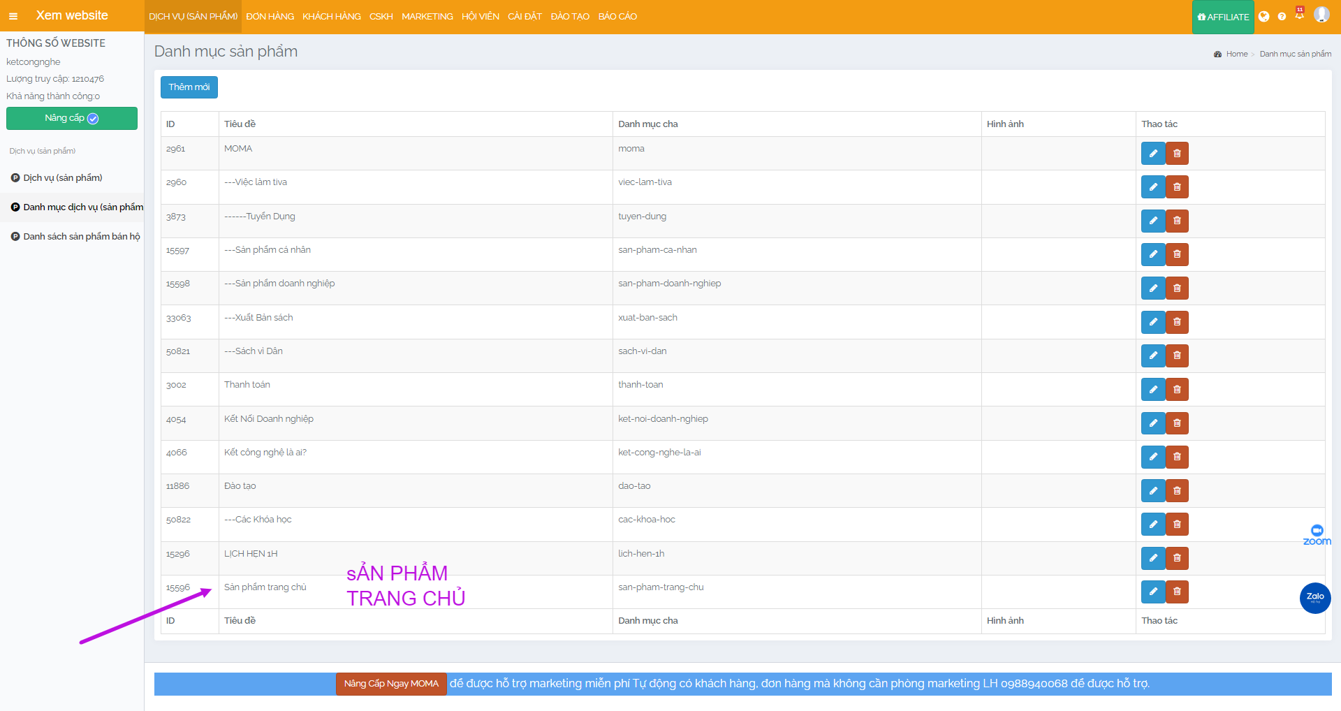 BƯỚC 3: NẾU MUỐN HIỆN SẢN PHẨM NÀO ƯU TIÊN NGOÀI TRANG CHỦ THÌ THÊM DANH MỤC SẢN PHẨM TRANG CHỦ