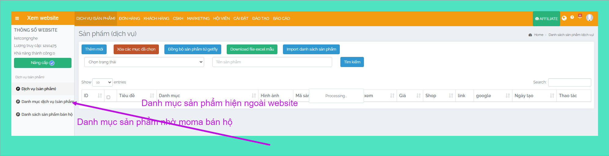 Bước 2: VÀO DANH MỤC SẢN PHẨM TRONG QUẢN TRỊ DOANH NGHIỆP