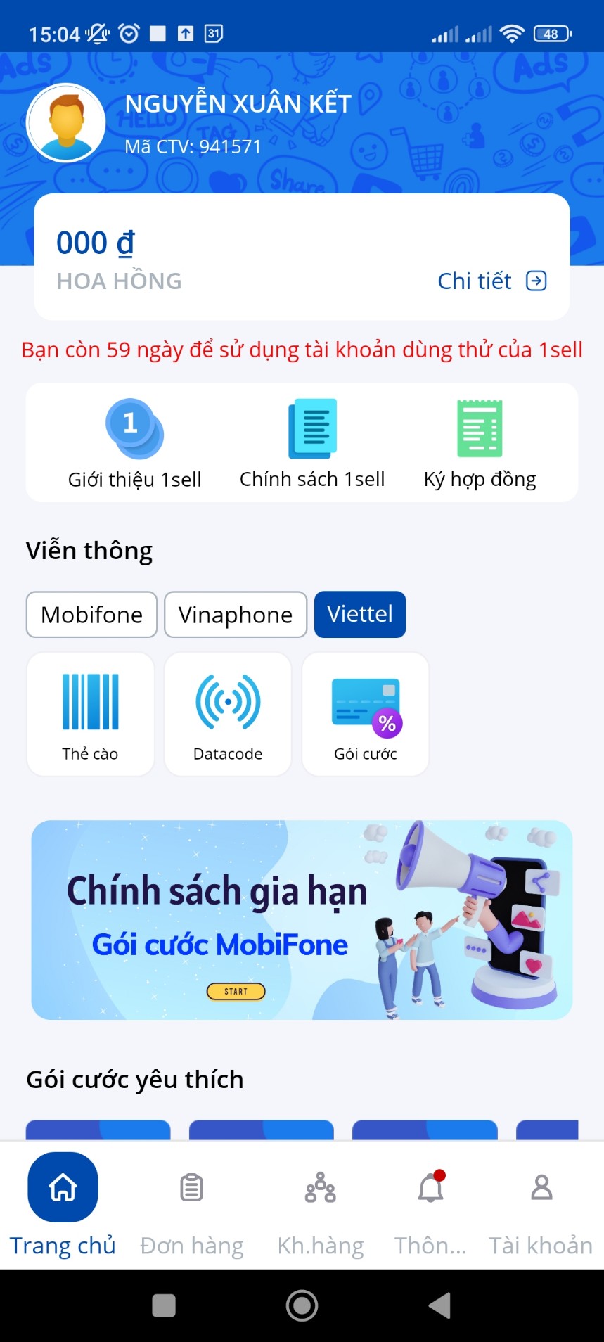 Hướng dẫn sử dụng phần mềm bán cước các nhà mạng 1sell dành cho cộng tác viên