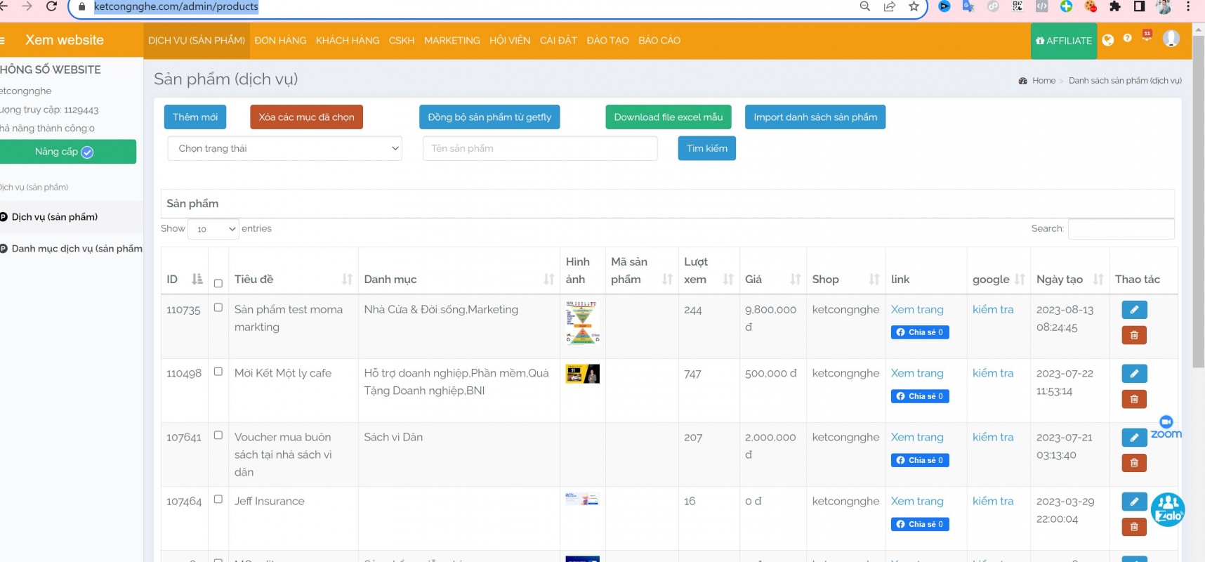 | GÓI | LƯỢT VIEW | LƯỢT KÍCH | GIÁ BÁN |