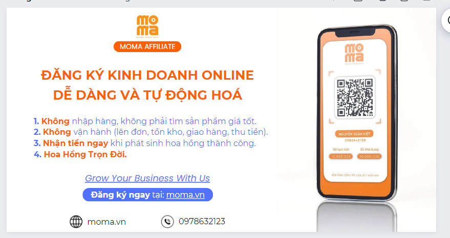 Moma tuyển cộng tác viên kinh doanh affiliate online không cần vốn