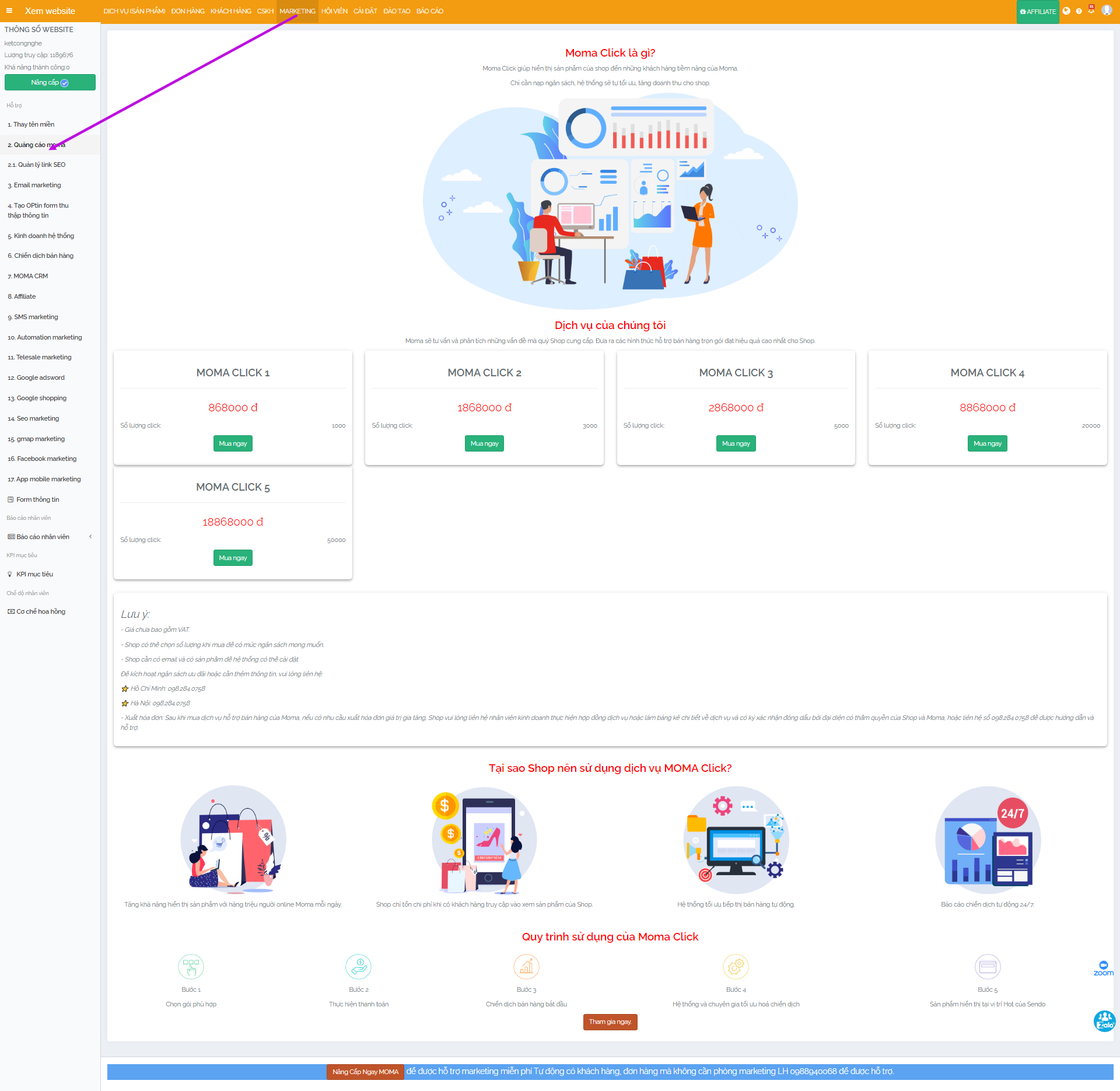 VẬY NẾU BẠN NÂNG CẤP 1 NĂM KÈM MOMA CLICK LÀ : 4.268.000 Tặng kèm tên miền và ssl miễn phí