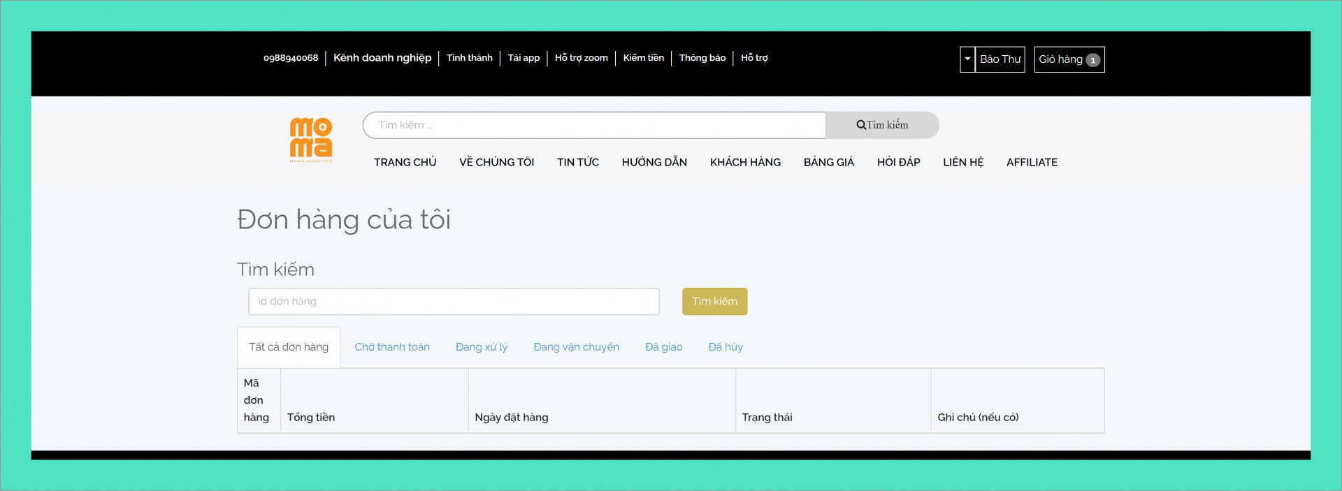 9. Tại sao Thanh toán trên moma chỉ có thanh toán online, ở đây chúng tôi muốn bạn cam kết khi giới thiệu thì tuyệt đối xác nhận đơn hàng, chúng tôi sẽ luôn tính hoa hồng cho cộng tác viên bất kỳ đơn hàng đó thế nào lên bạn yên tâm bán hàng.