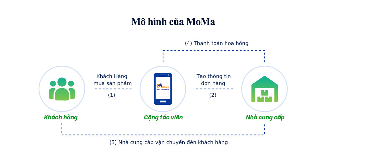 MOMA ĐỨNG RA làm trung gian đàm phán nhà cung cấp giúp cộng tác viên không phải đàm phán lo mỗi việc bán hàng, khách hàng uy tín